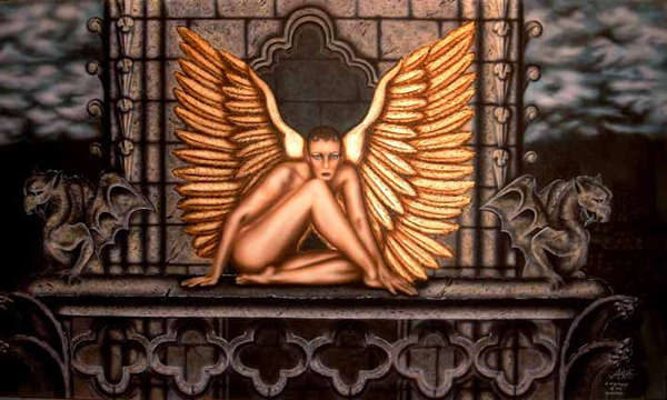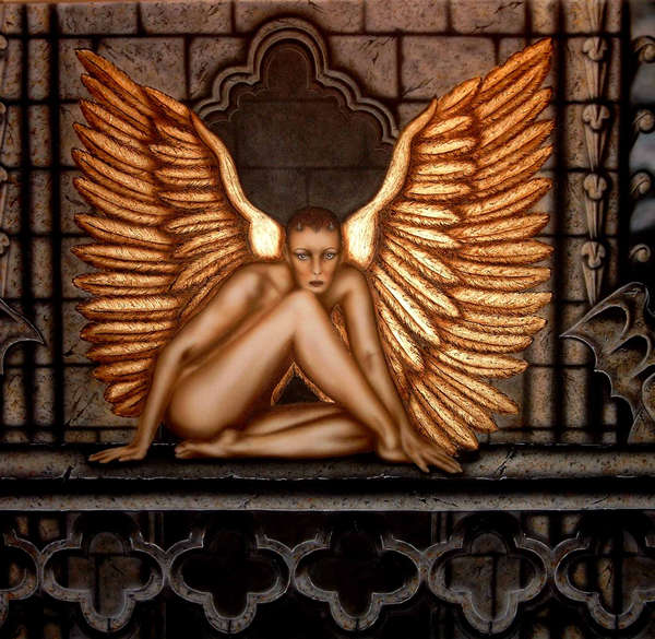 Leinwand 180x100AcrylBesonderheit:Flügel in Spachteltechnik und 23 Karat BlattgoldIm Kampf um die "Goldenen Spritzpistole" 20032. Platz in der Kategorie "Illustrationen"